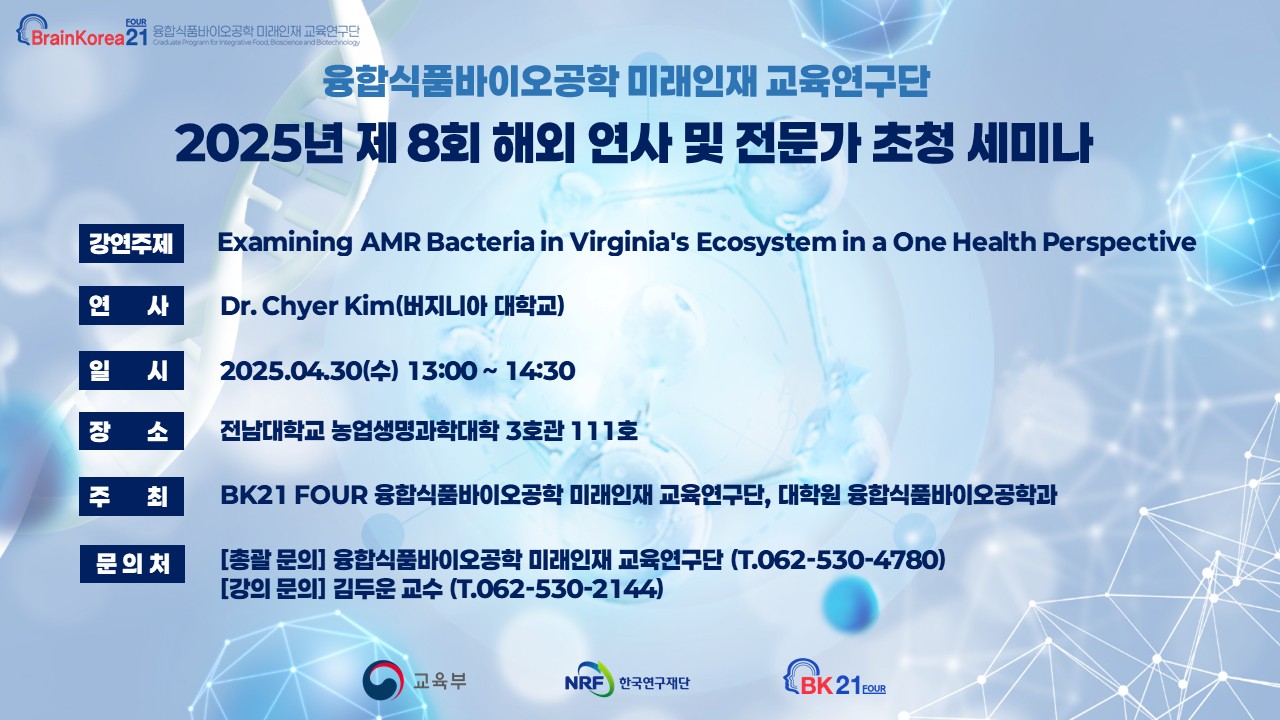 4단계 BK21 융합식품바이오공학 미래인재 교육연구단에서 「2025학년도 제8회 해외 연사 및 전문가 초청 세미나」를 개최합니다.
