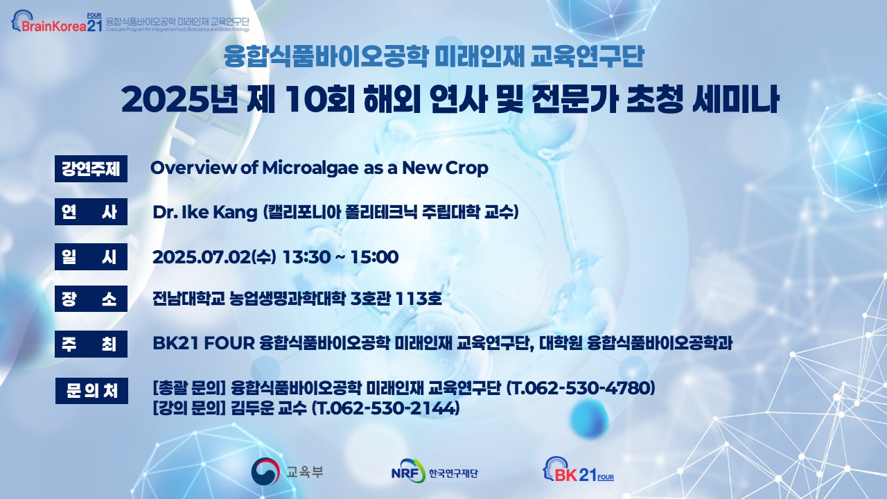 4단계 BK21 융합식품바이오공학 미래인재 교육연구단 2025년도 제10회 해외 연사 및 전문가 초청 세미나 안내