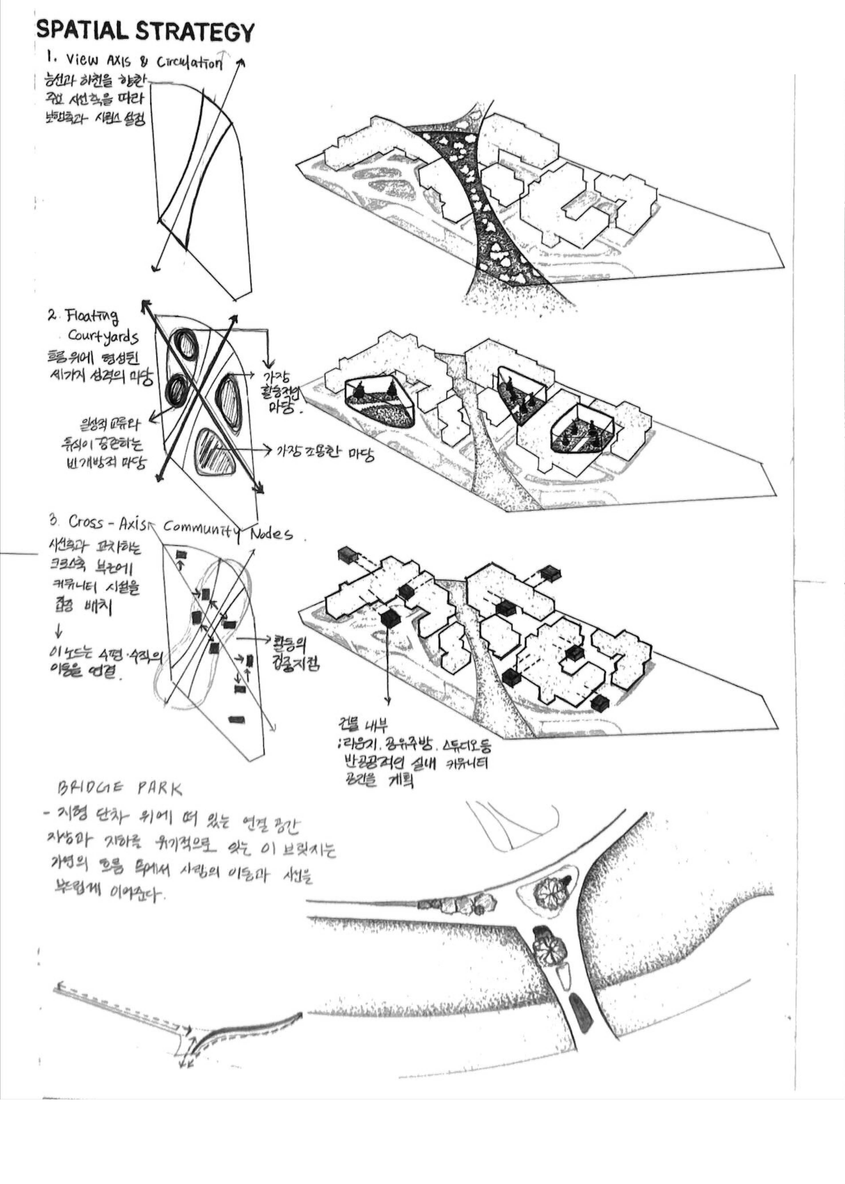 지형에서 비롯된 흐름은 건축으로, 건축의 흐름은 다시 삶으로 이어지며, 결국 이 집합주거는 자연의 리듬 속에 부유하는 공동체로 완성된다.