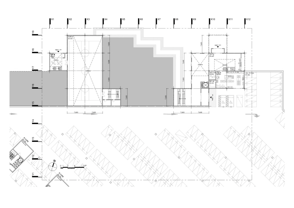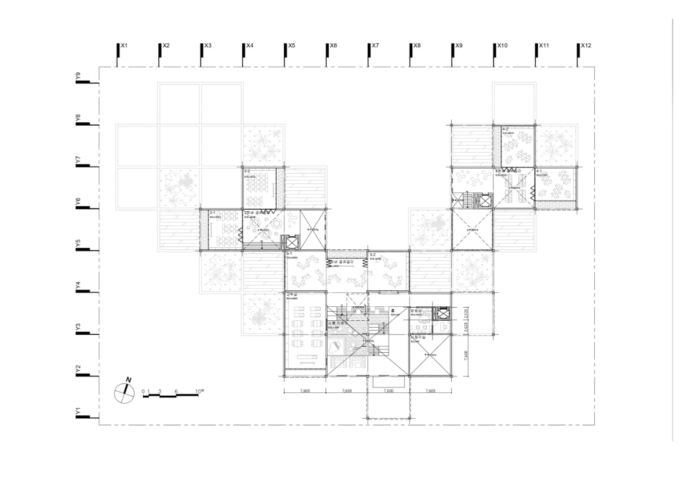 1층의 커뮤니티는 하나의 공간 안에 픽셀 박스를 배치하여 공간은 정의하되, 행위의 확장 가능성을 열어두고자 하였고, 일부 학교 프로그램을 배치하여 단지 주민들과 학생들의 노출 빈도를 높이고자 하였습니다. 주거동은 중앙의 커뮤니티 공간을 중심으로 각 층의 커뮤니티 공간이 수직적으로 연결되도록 하였으며, 현관 일부를 커뮤니티 공간으로 개방하여 세미 퍼블릭 – 세미 프라이빗의 완충공간을 주거 공간에 포함하였습니다.