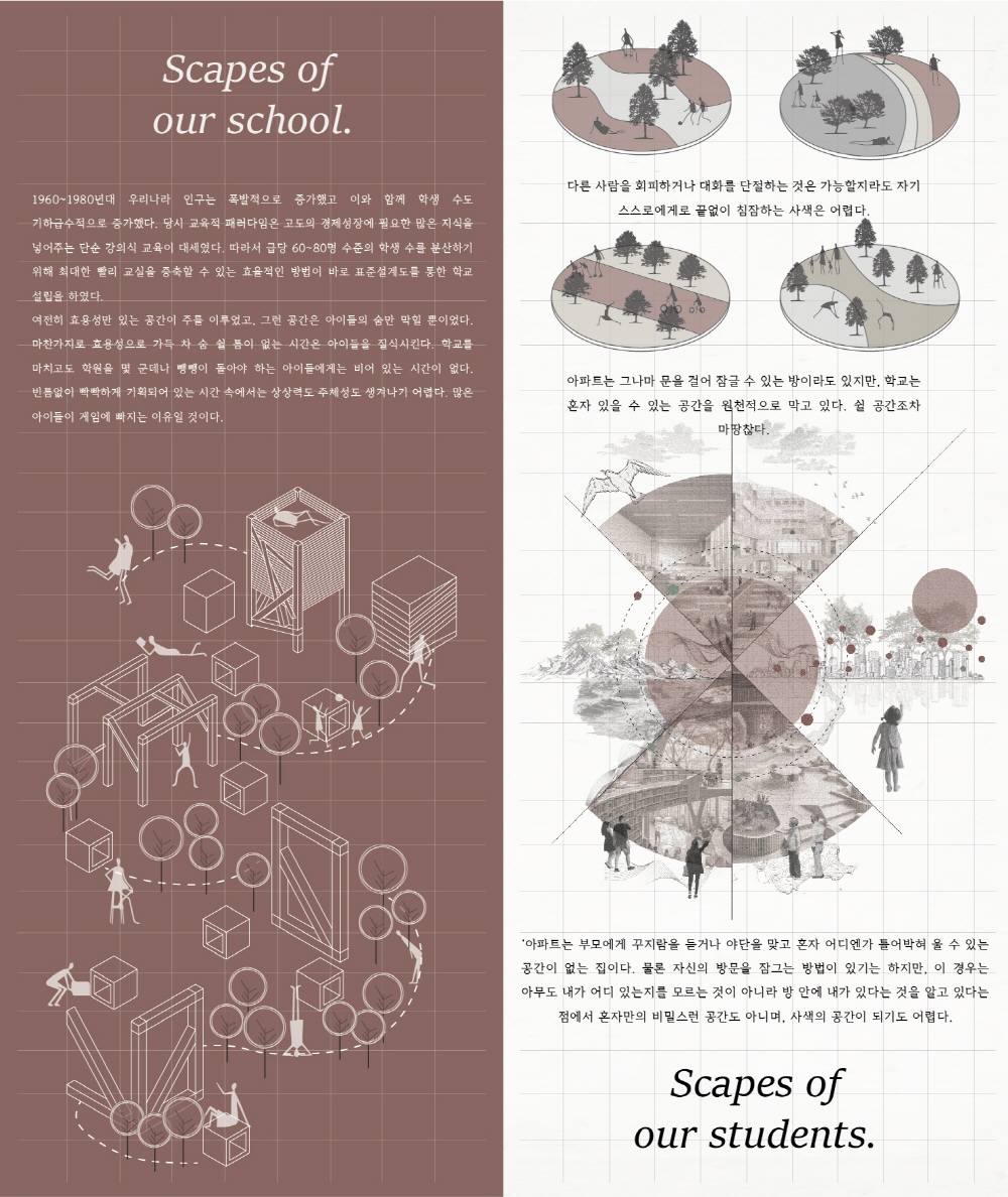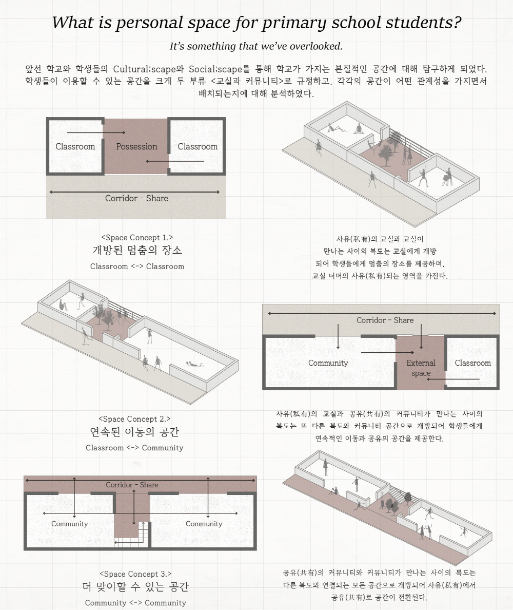 따라서 효용성과 효율성만을 따져온 학교 공간에 대해 새로운 개념을 적용시키며 기존 소통과 교류의 장이었던 ‘복도’를 재해석 한다.