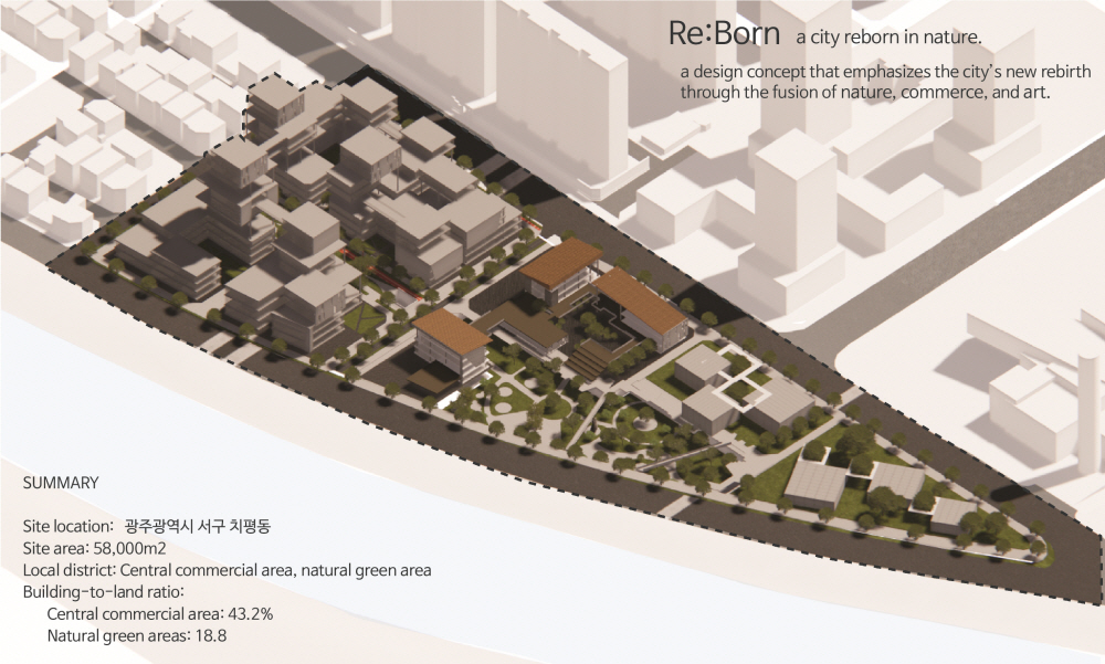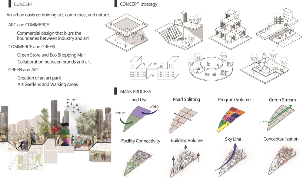 a design concept that emphasizes the city’s new rebirth through the fusion of nature, commerce, and art.