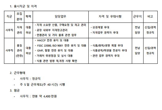 자연과사람들에서 자재관리, 품질관리(인증) 신입/경력사원을 아래와 같이 채용합니다.