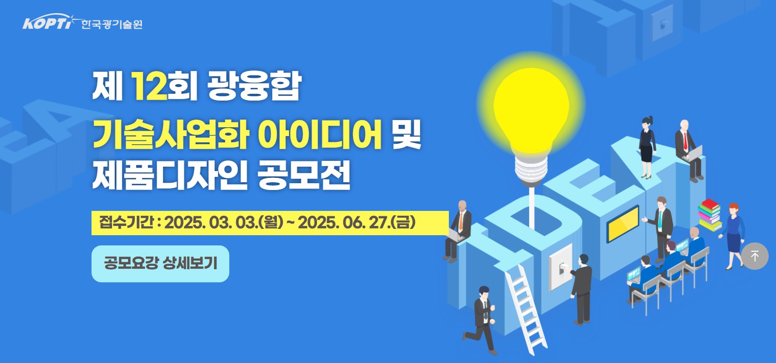 제12회 광융합 기술사업화 아이디어 및 제품디자인 공모전 참가자를 6월27일 금요일 까지 모집합니다.