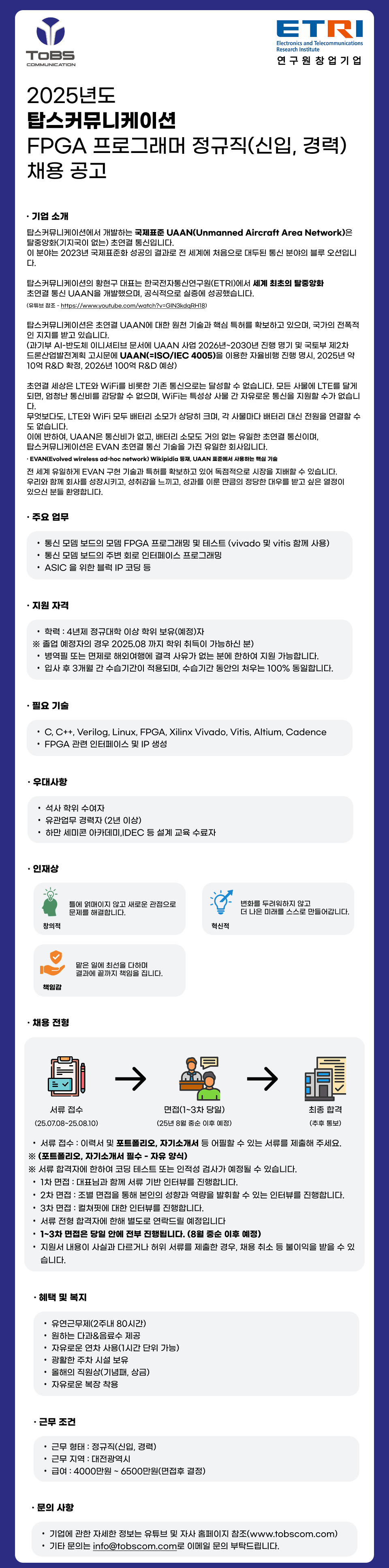 탑스커뮤니케이션(주) 채용 공고(접수: 7/8~8/10)