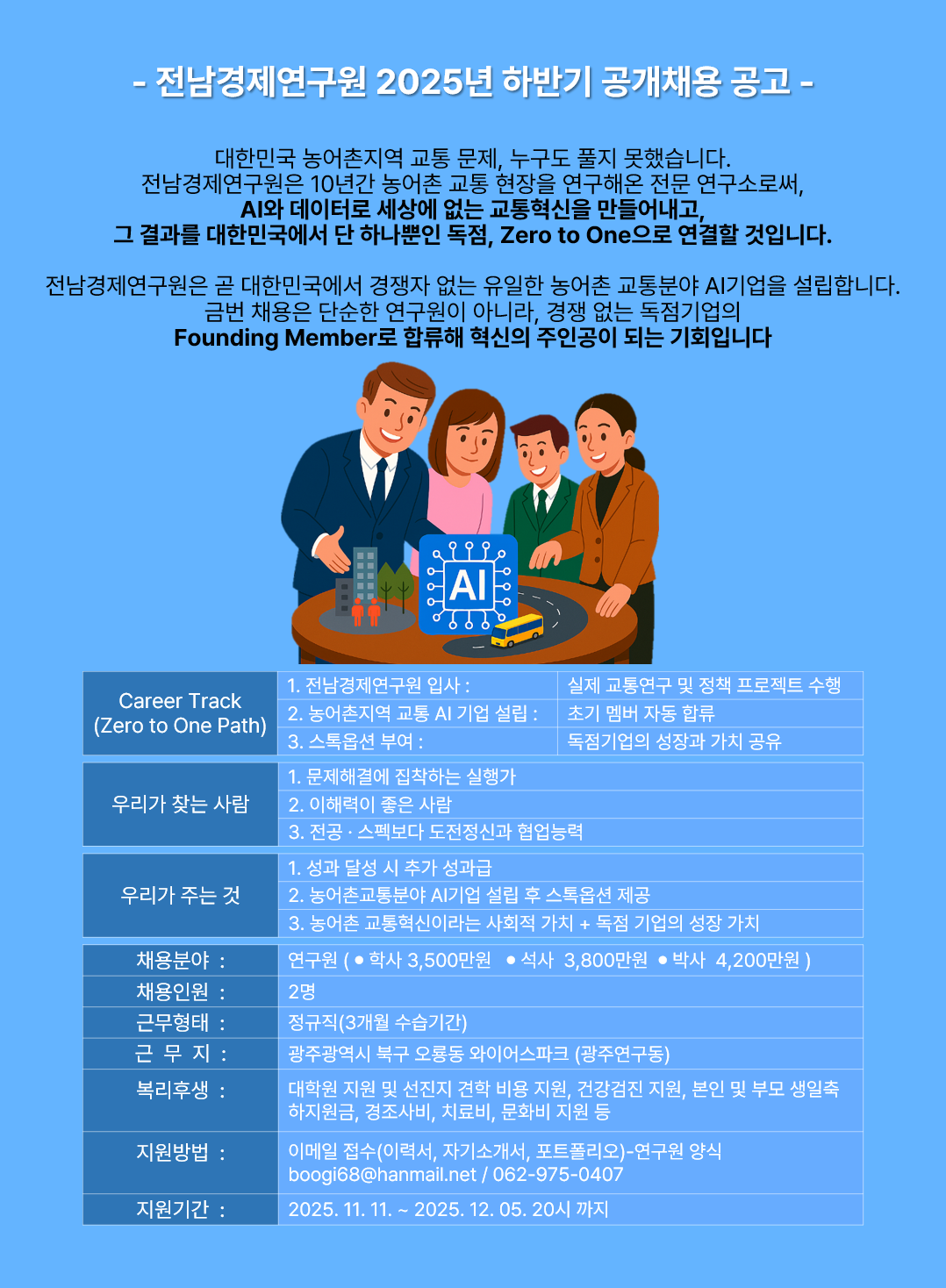 [취업] 전남경제연구원 2025년 하반기 신입연구원 모집 안내