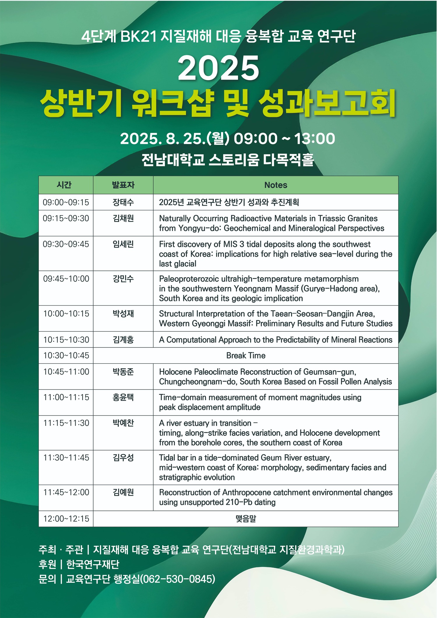 ※ 문의 : 교육연구단 행정실 062-530-0845/bk21geo@chonnam.ac.kr