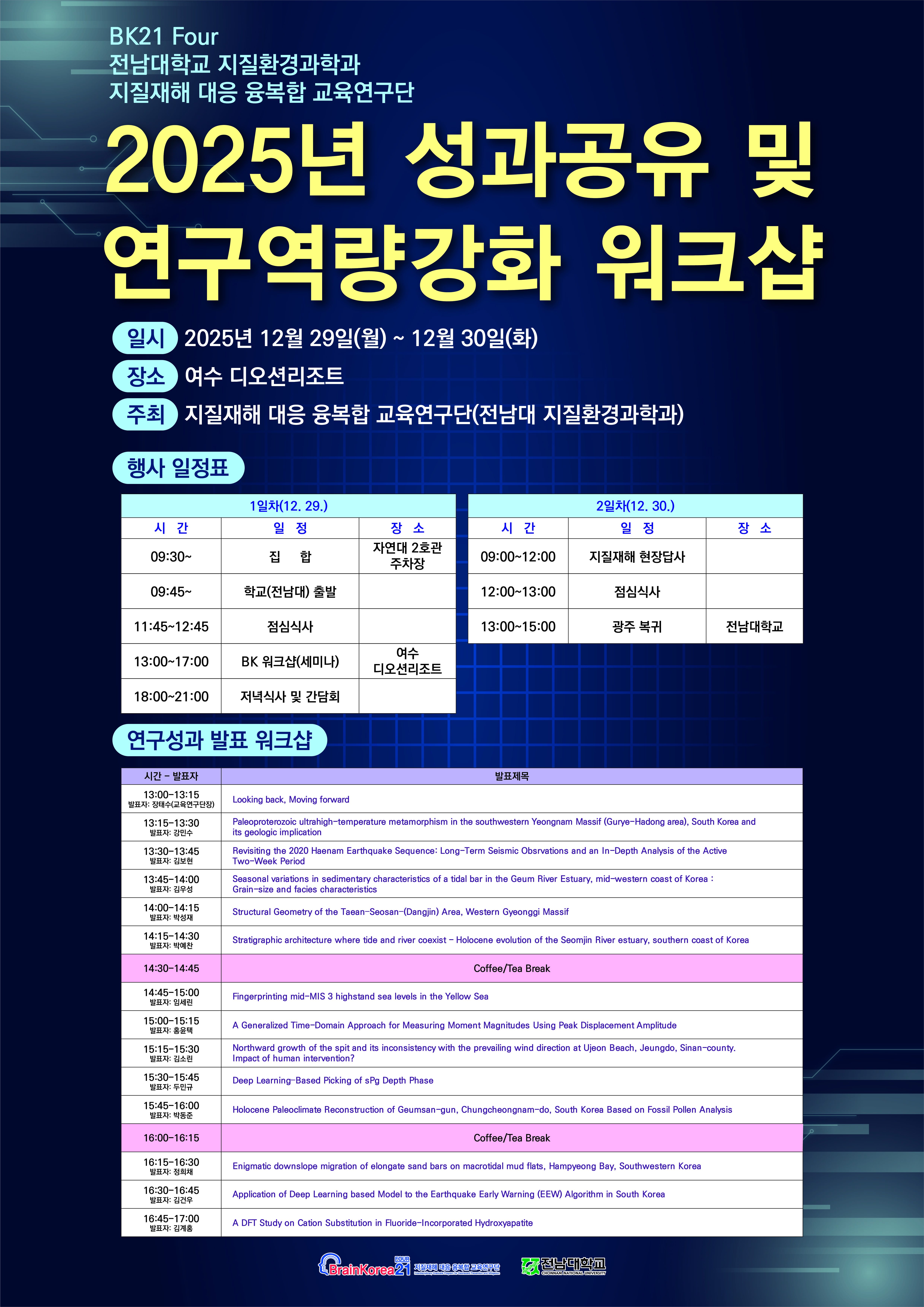 BK21 Four 전남대학교 지질환경과학과 지질재해 대응 융복합 교육연구단에서는 2025년 성과공유 및 연구역량강화