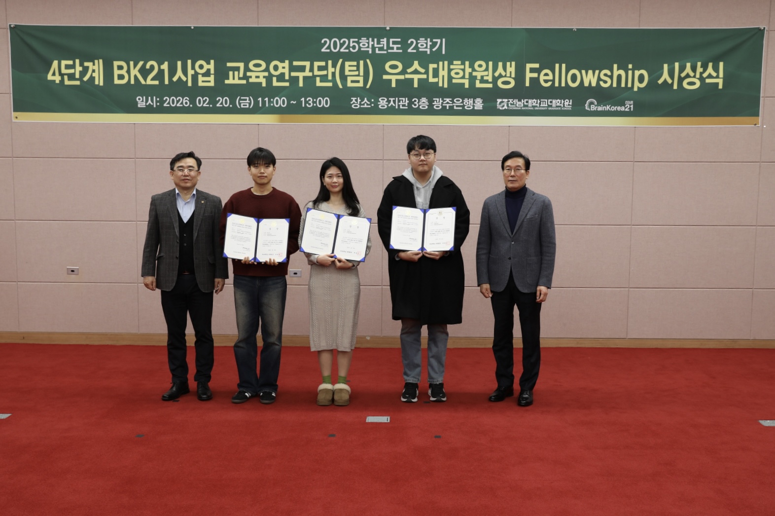 전남대는 현재 25개 교육연구단(팀)을 중심으로 BK21 사업을 운영 중이며, 학업 성취도와 연구 역량에서 두각을 나타낸 대학원생을 선발하여 ‘우수 대학원생 Fellowship’ 수상자로 선정했다.