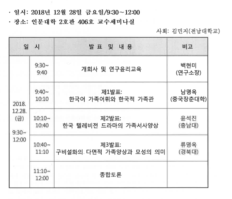 공동개최 [연구 콜로키움] 한국어문학과 가족 1회