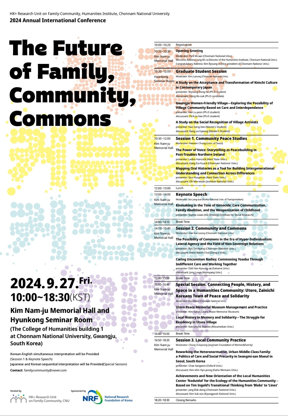 전남대학교 인문학연구원 HK+가족커뮤니티사업단의 2024년 국제학술대회에 여러분을 초대합니다.
