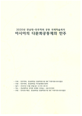 공동 후원 [국내학술대회] 아시아의 다문화 공동체와 만주