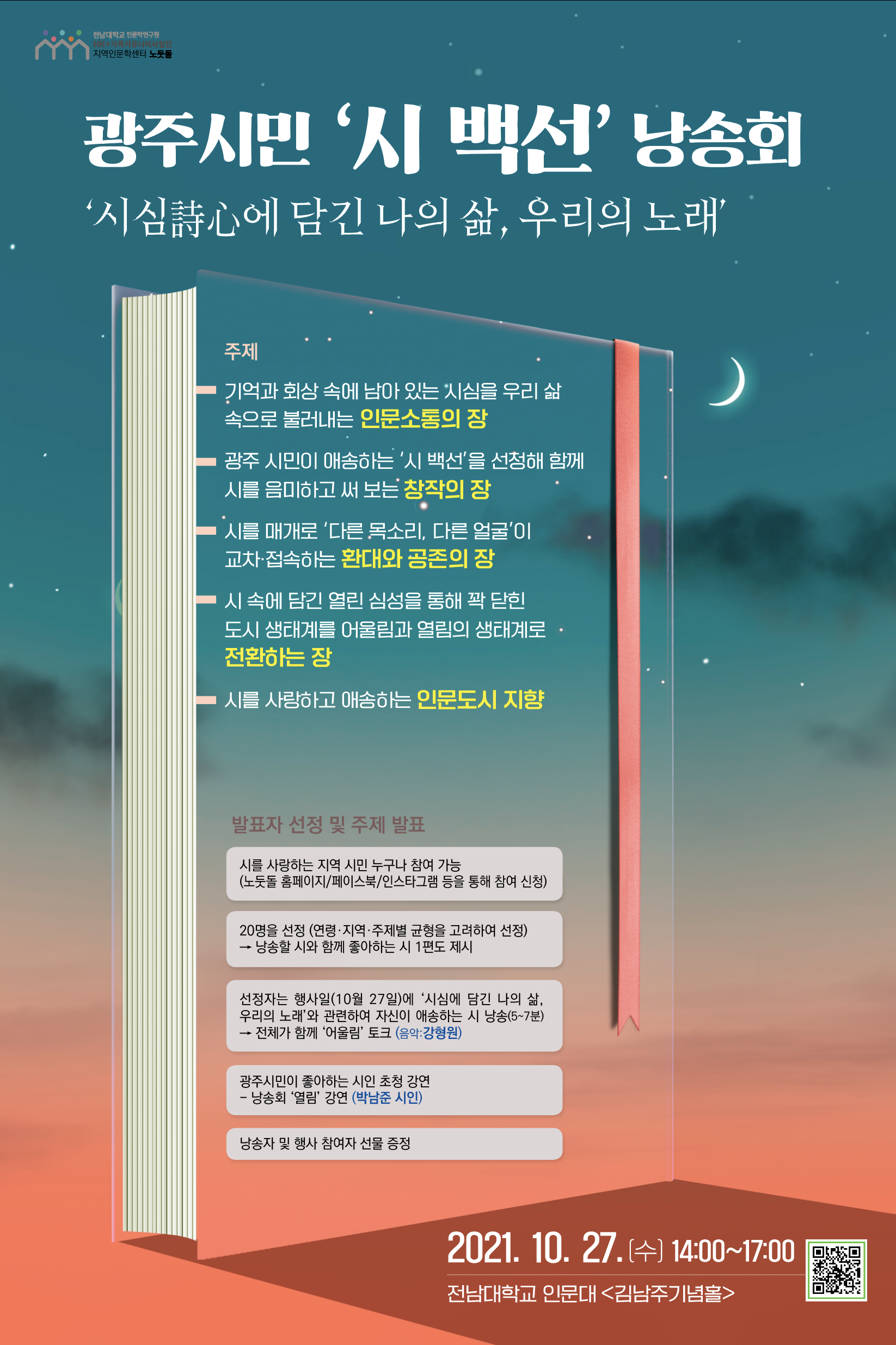 [정기 기획 프로그램(인문 주간)] 제16회 인문주간 <광주시민 '시 백선' 낭송회> 공모기간 연장 안내