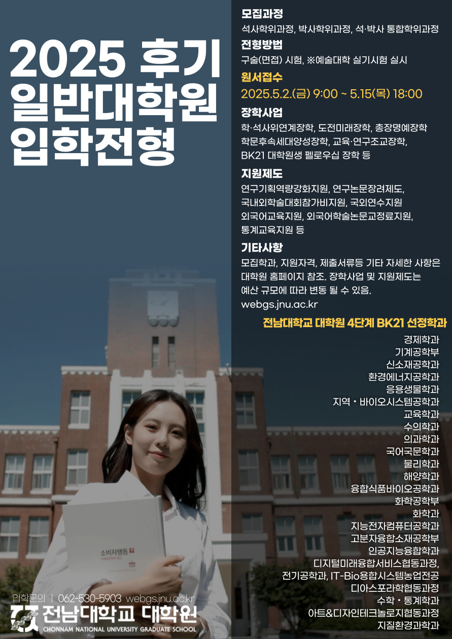 2025학년도 후기 일반대학원 신입생을 모집합니다.