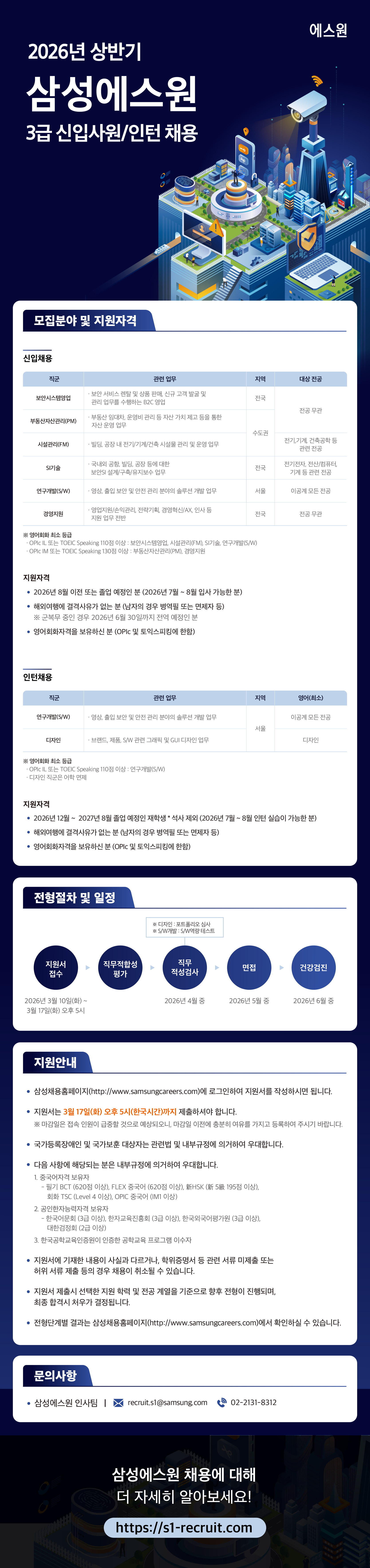 [삼성에스원] 2026 상반기 삼성에스원 3급 신입사원/인턴 채용(~3/17)