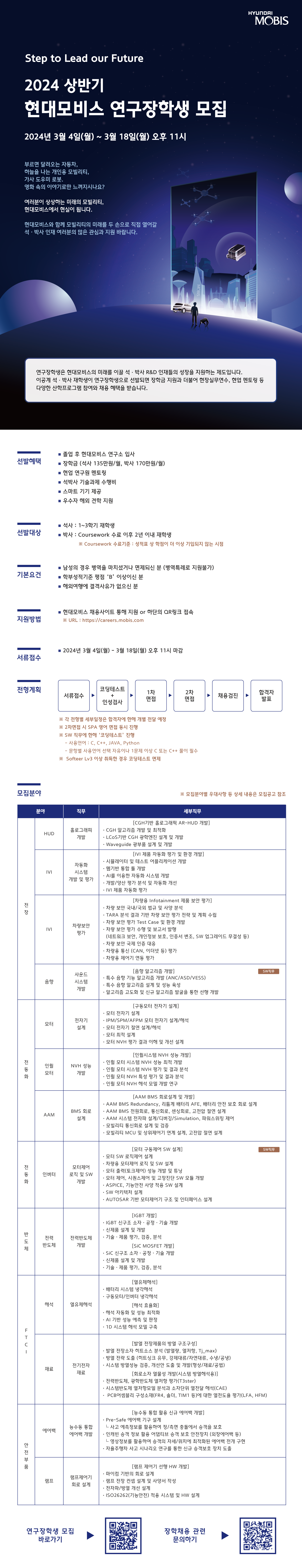 현대모비스와 함께 모빌리티의 미래를 두 손으로 직접 열어갈 석·박사 인재 여러분의 많은 관심과 지원 바랍니다.