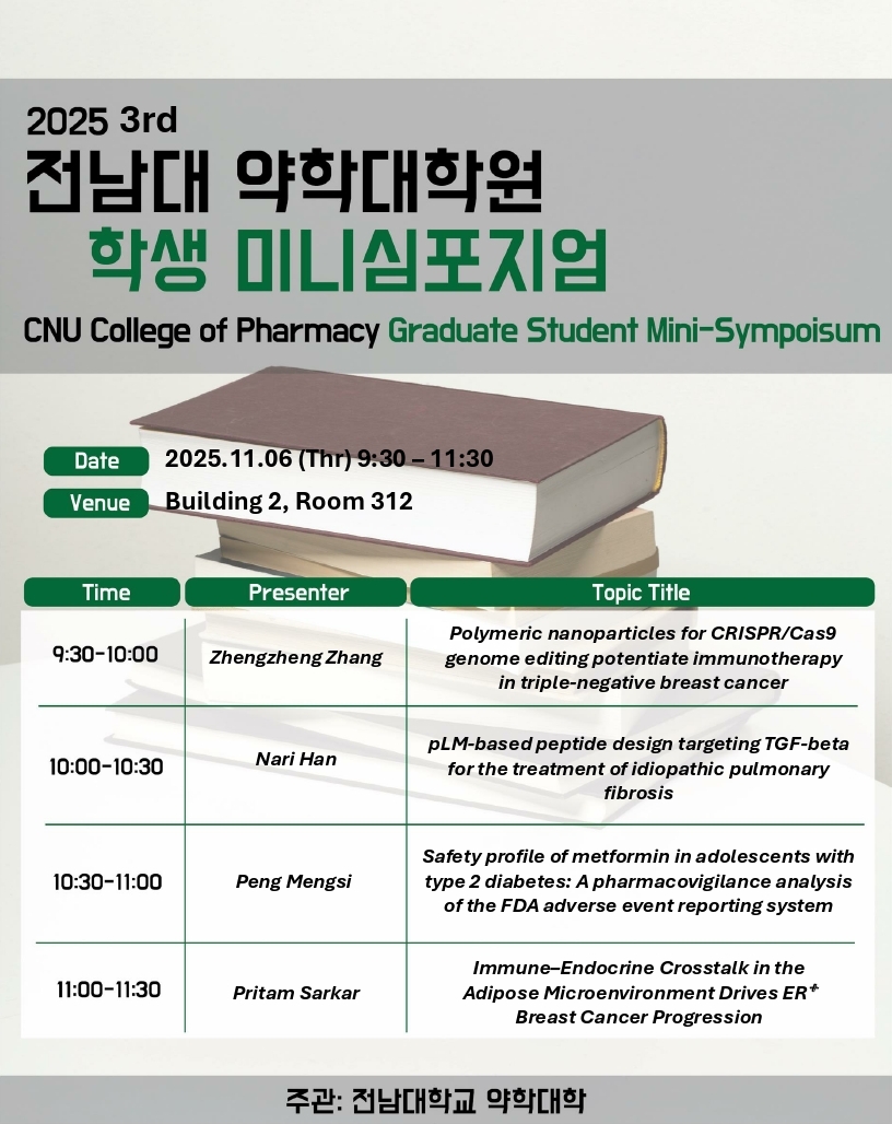 2025 3rd 전남대 약학대학원 학생 미니심포지엄을 아래와 같이 진행합니다.