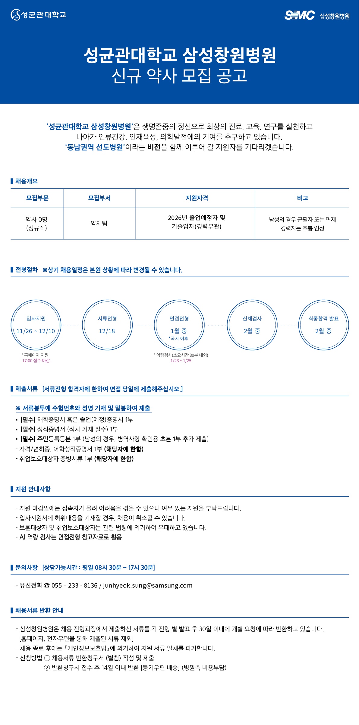 성균관대학교 삼성창원병원 약사 채용공고 (~ 12월 10일 마감)
