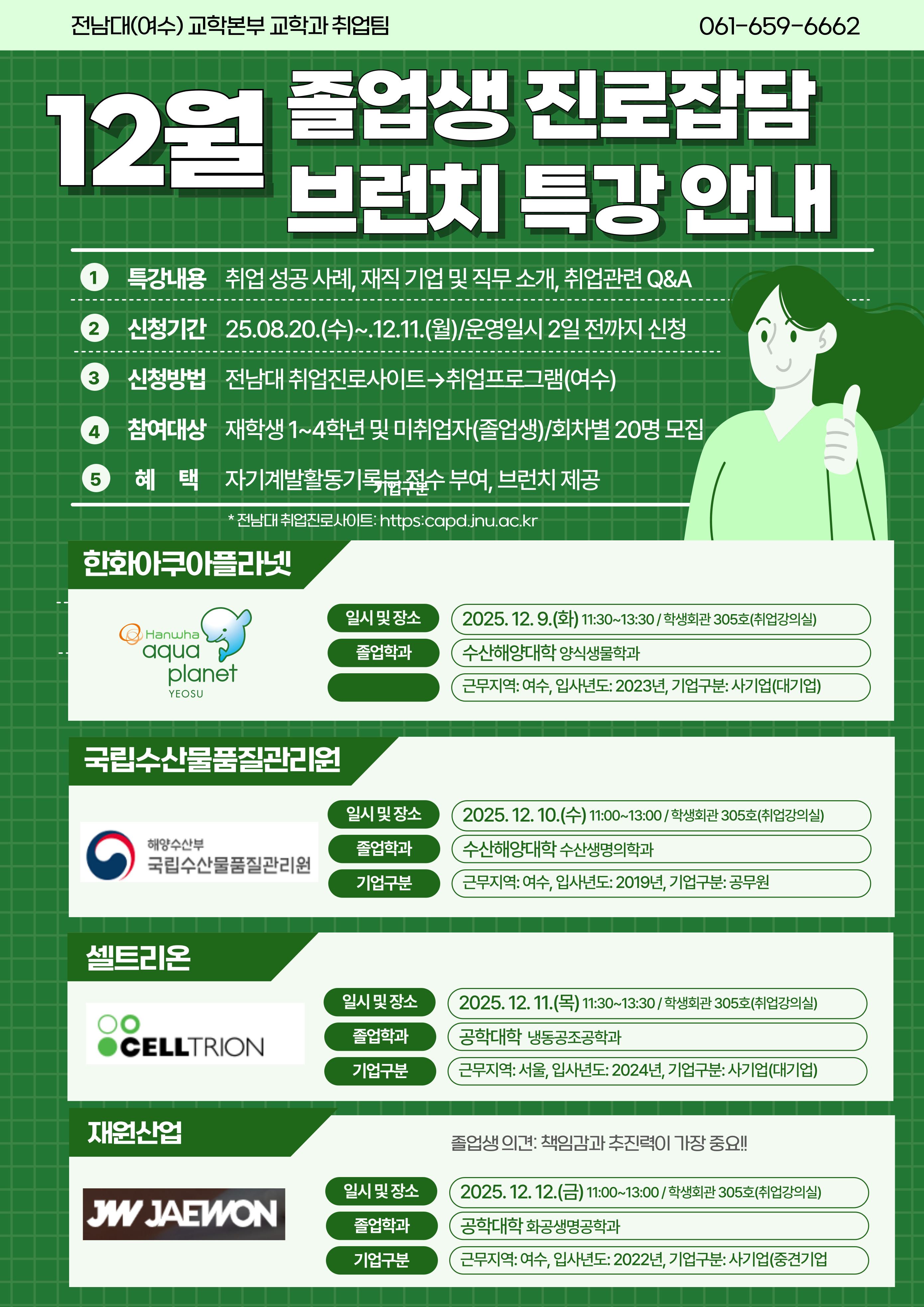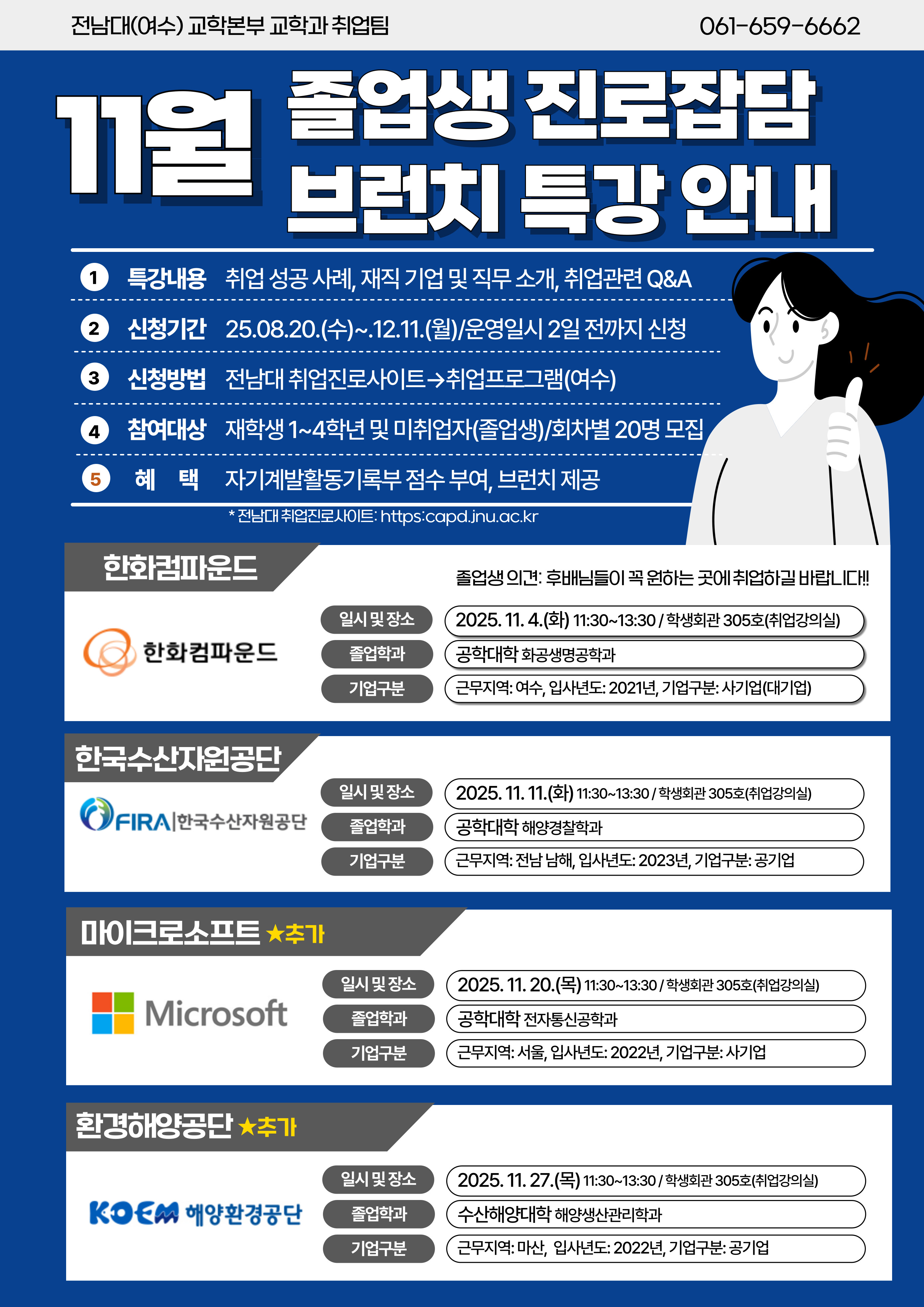 - (학생개인) 취업진로사이트(https://capd.jnu.ac.kr) → 취업프로그램(여수)