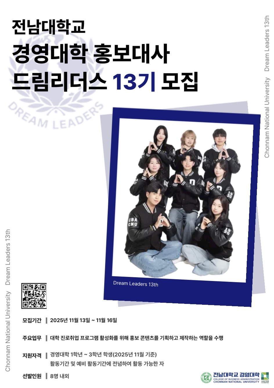 2026학년도 경영대학 드림리더스(13기)를 아래와 같이 선발하여 운영하고자 합니다.