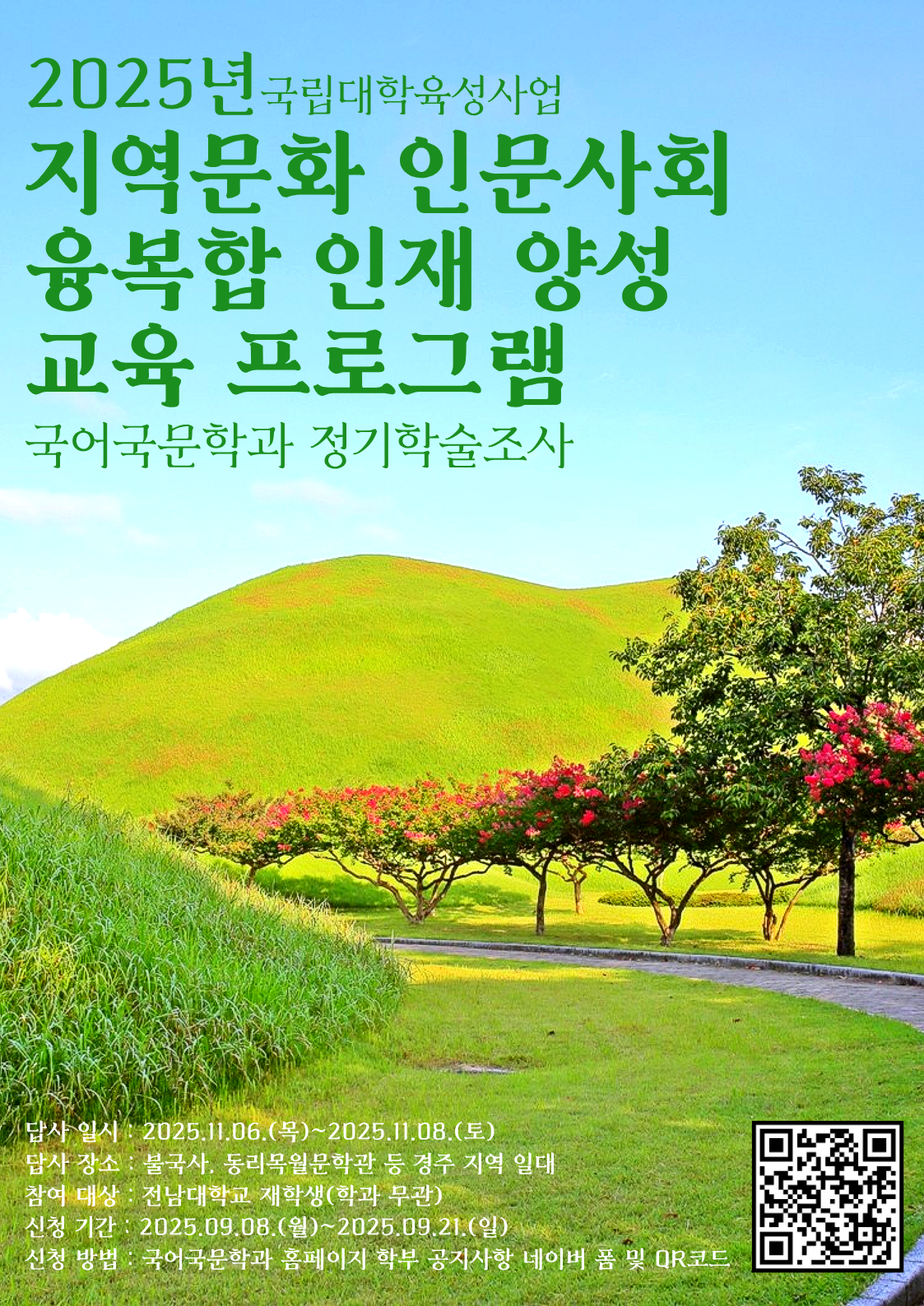 2025학년도 국어국문학과 정기학술조사는 2025년 국립대학 육성사업의 지원의 받아 <지역문화 인문사회 융복합 인재 양성 교육 프로그램>으로 진행됩니다.