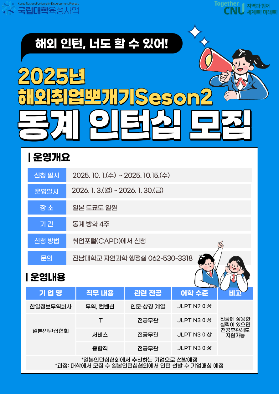 2025년 국립대학 육성사업 『해외취업뽀개기S2 동계 인턴십』신청 안내