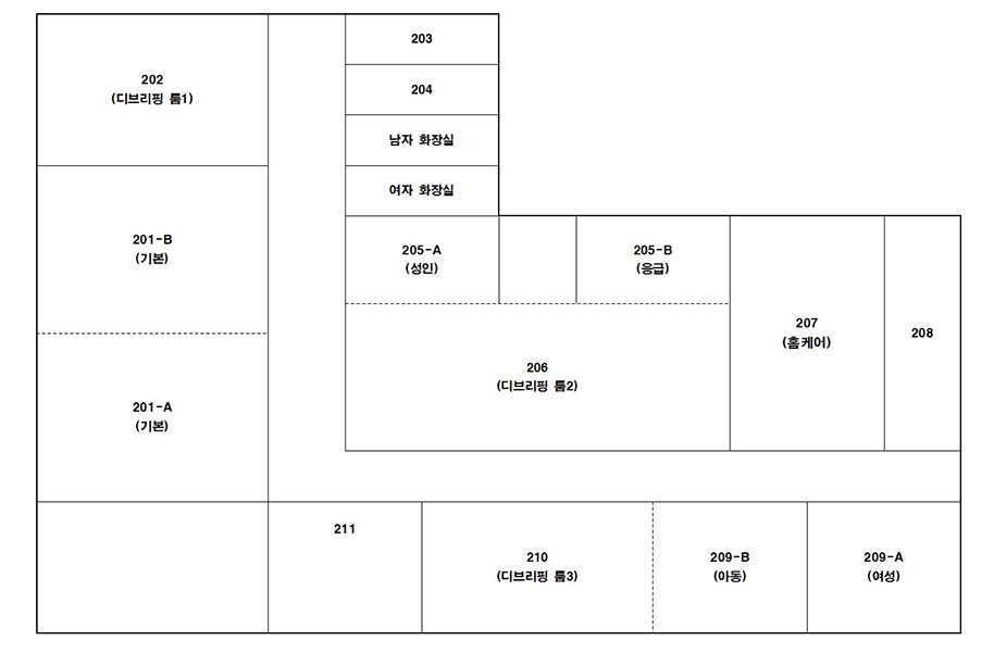 | 205B(응급) | 2층 205-B호 | 간호대학 재학생 | 테이블, 의자 | 6명 | 팀학습 | |